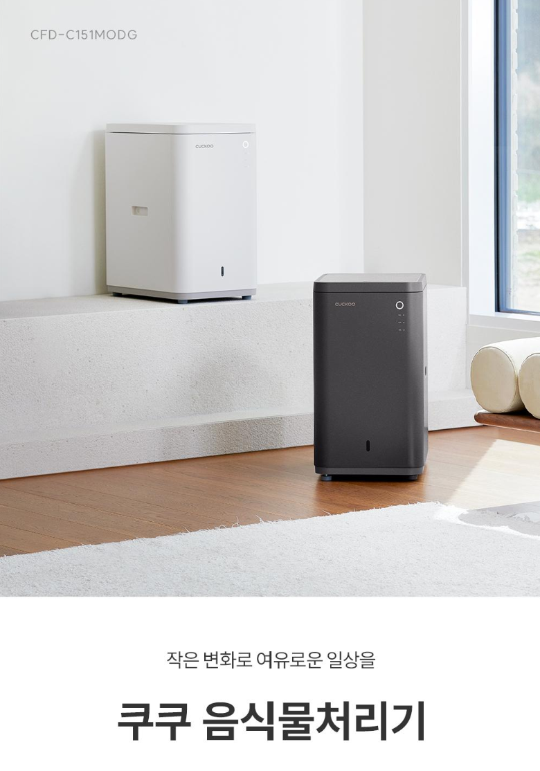 오늘은 ‘주방 한 켠에서 음식물 쓰레기 처리를 깔끔하고 경제적으로’ 가능한 신작, 쿠쿠전자 음식물처리기 모델명 CFD-C151MO를 소개해드릴게요.