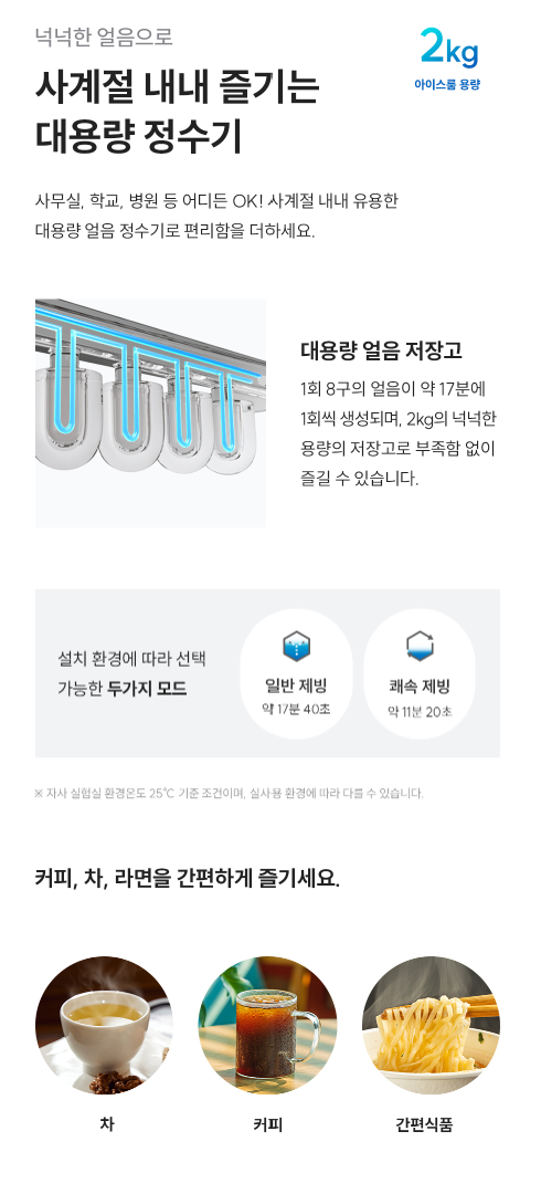 ✅ 냉수·온수·정수·얼음 기능을 한대로 해결하고 싶은 공간
