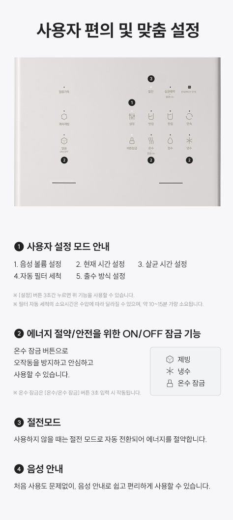 ✅ 필터 시스템 강화 — 냉·온수 및 얼음에 쓰이는 수로의 정수 능력 보강
