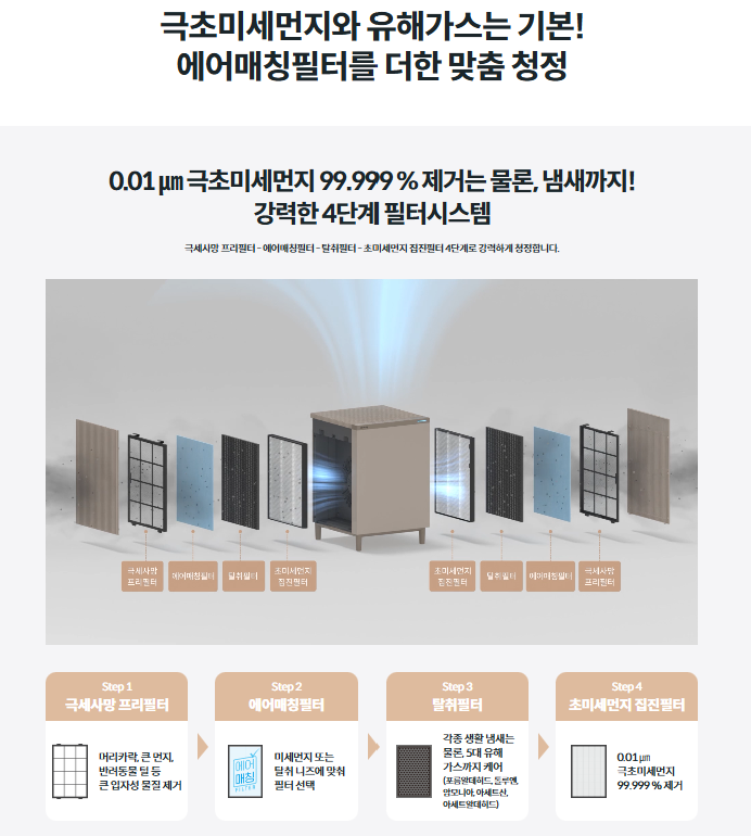 ✅ 기능: 초미세먼지·유해가스·냄새 제거 등 강력 청정 기능 포함